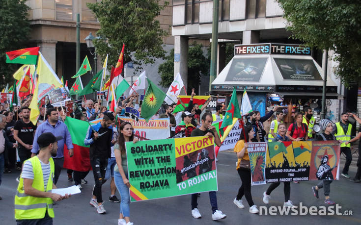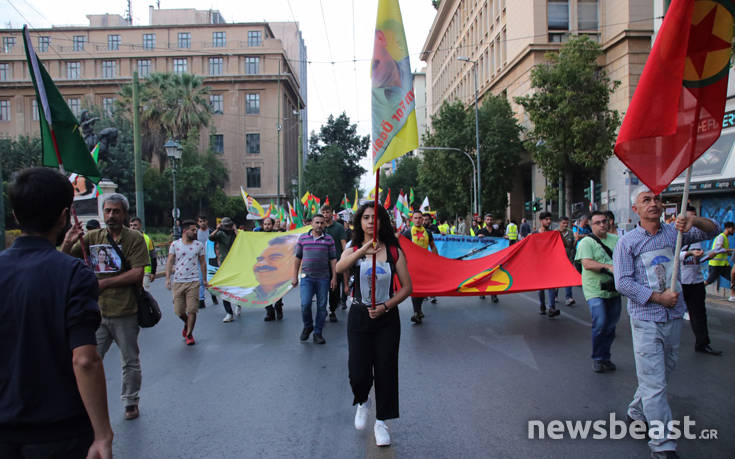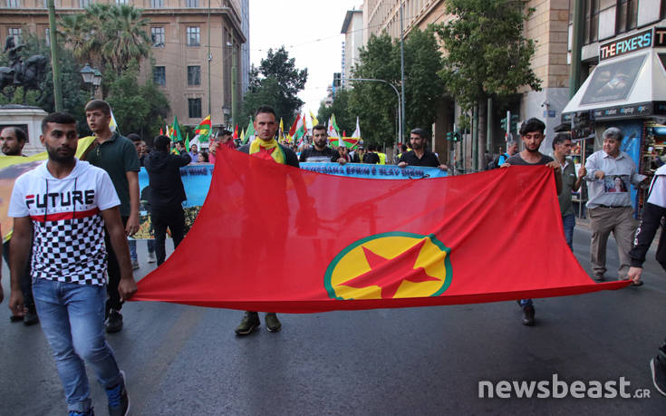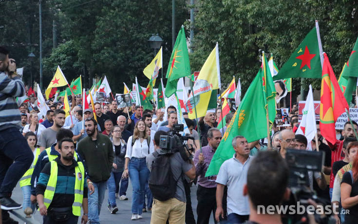Συγκέντρωση και πορεία διαμαρτυρίας πραγματοποιούν οι Κούρδοι στην Αθήνα, με αφορμή τις πολεμικές επιχειρήσεις της Τουρκίας στη Συρία.