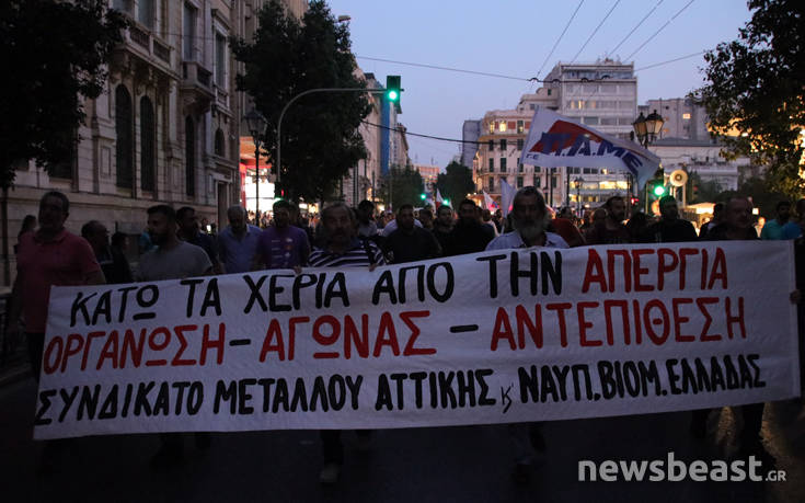 Έξω από τη Βουλή κατέληξε η πορεία των διαδηλωτών που αντιδρούν στο πολυνομοσχέδιο που προωθεί η κυβέρνηση σε εργασιακά και συνδικαλιστικό νόμο, με Ομοσπονδίες, Εργατικά Κέντρα και Συνδικάτα να δίνουν δυναμικό «παρών».