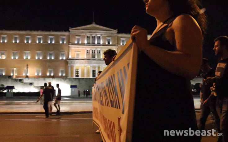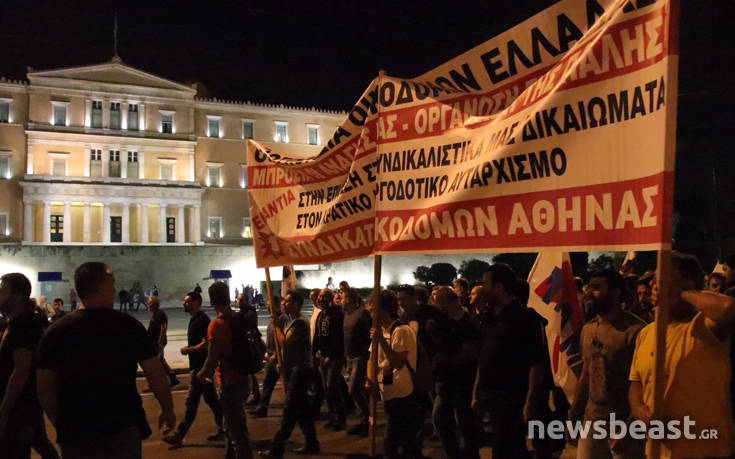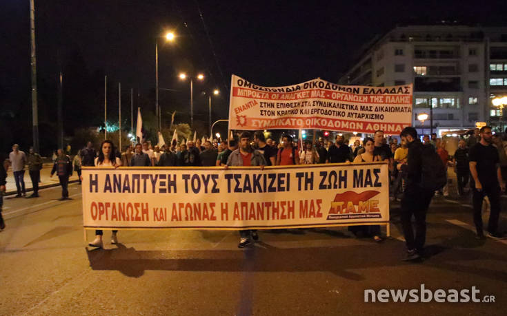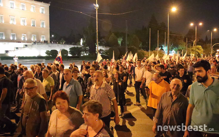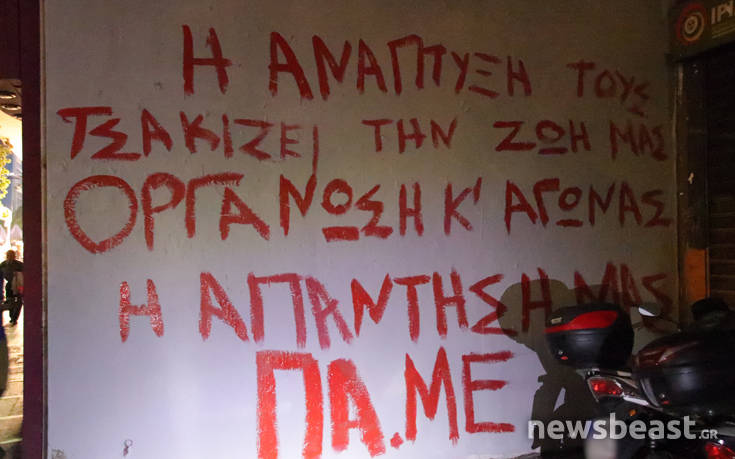 Σημείο συνάντησης ήταν η πλατεία Κλαυθμώνος, στις 18:30, ενώ στη διαδρομή προς την πλατεία Συντάγματος έγινε μια… στάση και έξω από το υπουργείο Εργασίας, όπου μέλη του ΠΑΜΕ έγραψαν συνθήματα με κόκκινη μπογιά.
