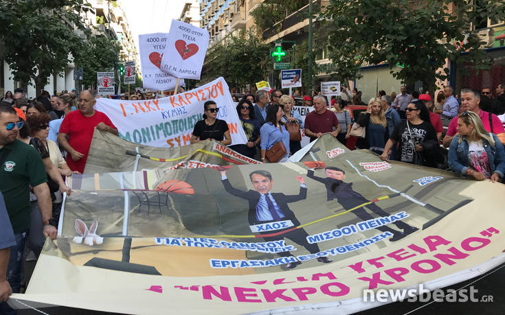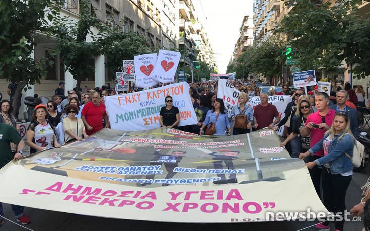 Η πορεία πέρασε από Υγειονομικές Μονάδες, το Μέγαρο Μαξίμου, την Βουλή και κατέληξε στο υπουργείο Υγείας.
