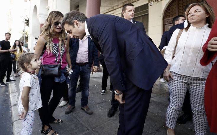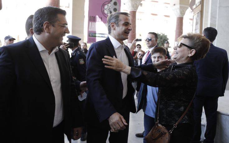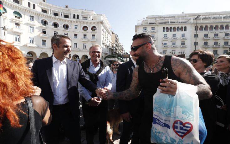 Εκεί τον υποδέχτηκαν ο γραμματέας της Κ.Ο της Ν.Δ. Σταύρος Καλαφάτης και ο περιφερειάρχης Κεντρικής Μακεδονίας Απόστολος Τζιτζικώστας. Ο πρωθυπουργός περπάτησε στην Αριστοτέλους και χαιρέτισε πολίτες, είχε σύντομες συνομιλίες μαζί τους, αντάλλαξε ευχές και φωτογραφήθηκε μικρούς και μεγάλους που του το ζήτησαν.