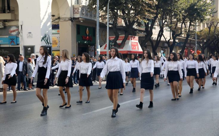 Πλήθος κόσμου έδωσε το παρών στη μαθητική παρέλαση που πραγματοποιήθηκε στη Θεσσαλονίκη, επί της οδού Τσιμισκή, για την εθνική επέτειο της 28ης Οκτωβρίου, χειροκροτώντας τους μαθητές και τις μαθήτριες δημοτικών, γυμνασίων και λυκείων της πόλης που συμμετείχαν.