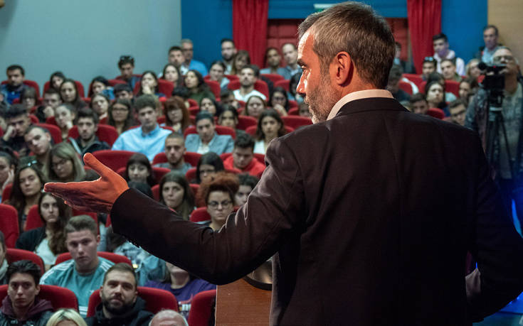 Οι σπουδαστές του ΙΕΚ ΑΚΜΗ «ανέκριναν» τον Δήμαρχο, σε ζητήματα εφ’ όλης της ύλης ενώ ο ίδιος, με την ολοκλήρωση του session ανέφερε αστειευόμενος: «Κανείς δεν έκανε ερώτηση για τον ΠΑΟΚ. Γυρίστε όλοι πίσω».