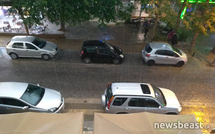 Ο ουρανός μαύρισε πάνω από την πρωτεύουσα και οι δρόμοι γέμισαν νερά, προκαλώντας το σύνηθες κομφούζιο στους δρόμους και πολλά προβλήματα στην κυκλοφορία των αυτοκινήτων.