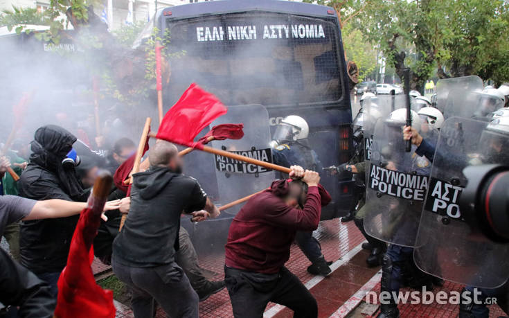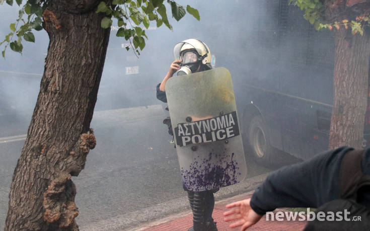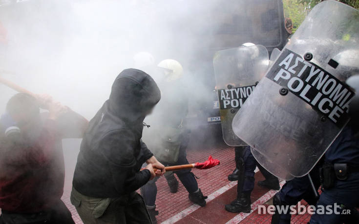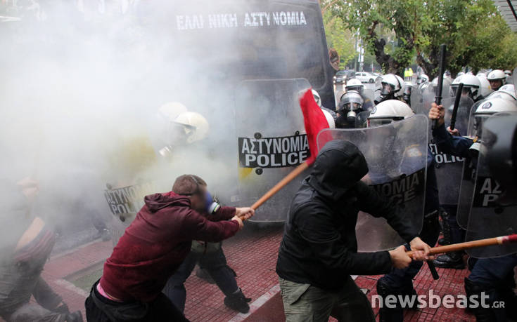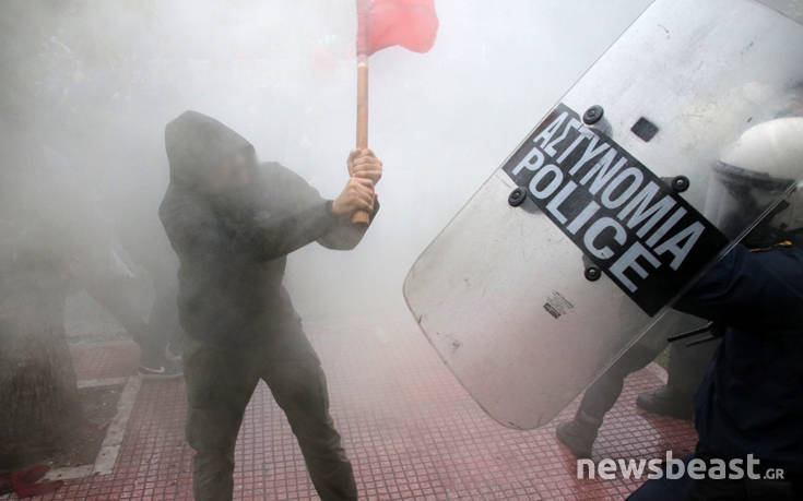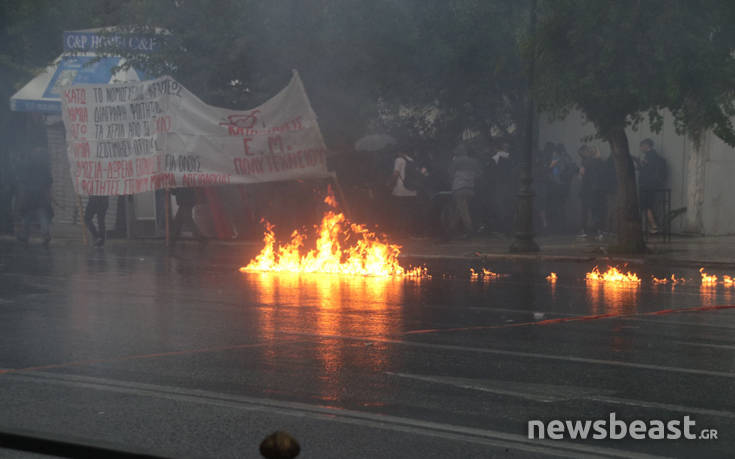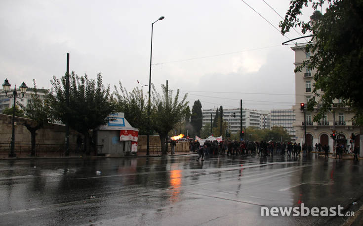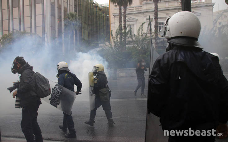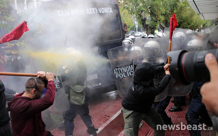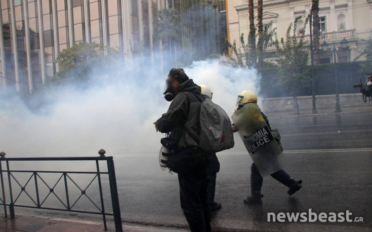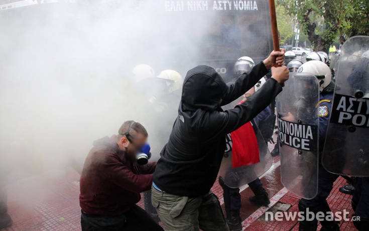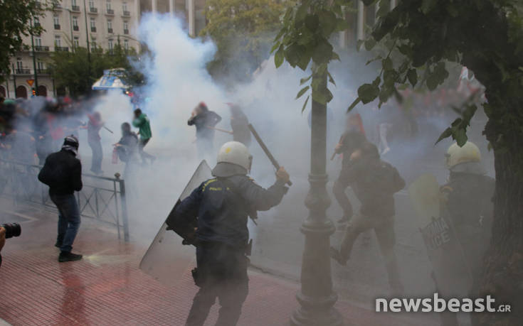Μέρος της πορείας όταν έφτασε στον φραγμό των ΜΑΤ στο πλάι της Βουλής κινήθηκε επιθετικά προς τα ΜΑΤ τα οποία απάντησαν με χρήση χημικών.