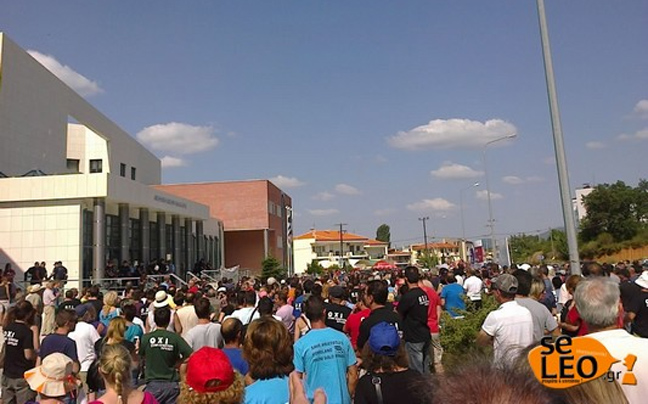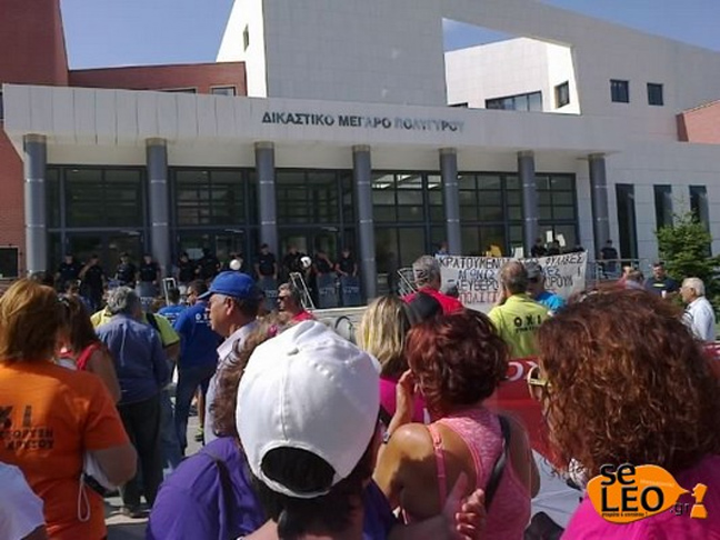 Συγκέντρωση πραγματοποιούν αυτή την ώρα έξω από το δικαστικό μέγαρο Πολυγύρου πολίτες που διαμαρτύρονται για τις συλλήψεις δύο ατόμων για τον εμπρησμό στο εργοτάξιο των Σκουριών.