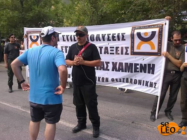 Δημοτικοί αστυνομικοί, σχολικοί φύλακες και οι υπόλοιποι εργαζόμενοι στους δήμους, ξεκίνησαν από το δημαρχείο και έφτασαν με πορεία έξω από την ΕΡΤ3 στην Λεωφόρο Στρατού στη Θεσσαλονίκη.