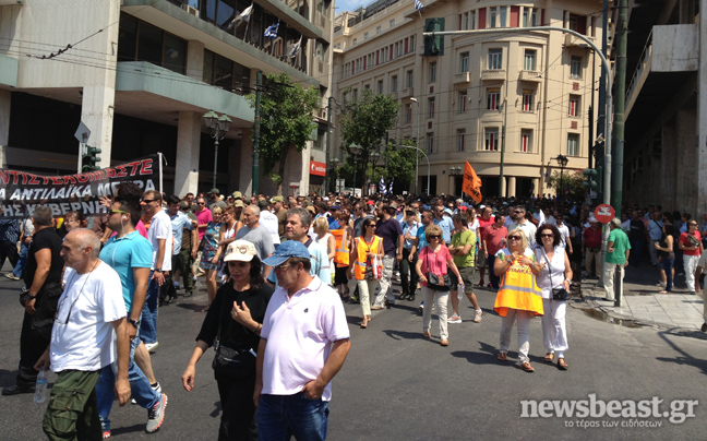 Στην πλατεία Συντάγματος καταλήγουν αυτή την ώρα οι πορείες της ΓΣΕΕ, της ΑΔΕΔΥ και του ΠΑΜΕ.