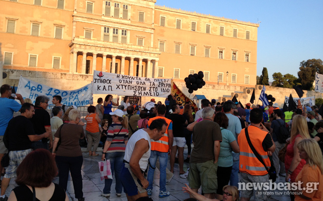 Συλλαλητήριο διαμαρτυρίας της ΑΔΕΔΥ, με τη συμμετοχή χιλιάδων εργαζομένων, στην περιοχή της πλατείας Συντάγματος βρίσκεται σε εξέλιξη αυτή την ώρα, ενόψει της ψήφισης του πολυνομοσχεδίου.
