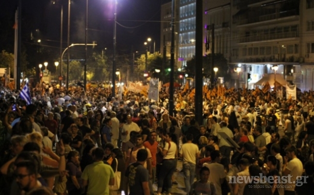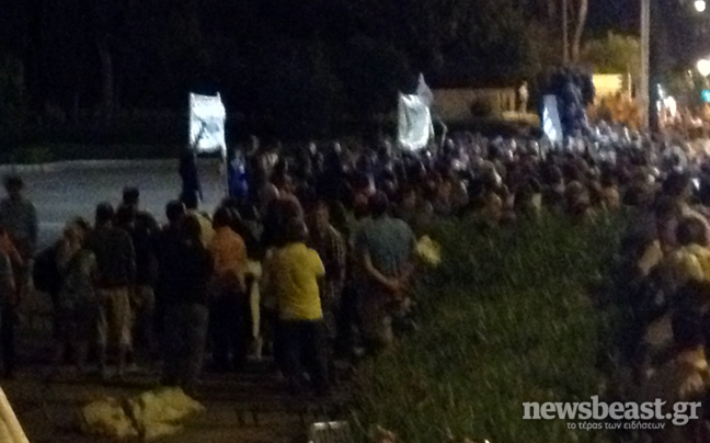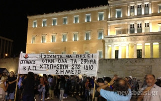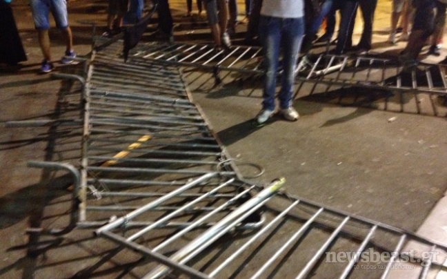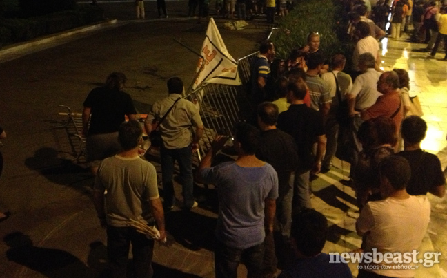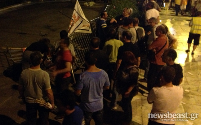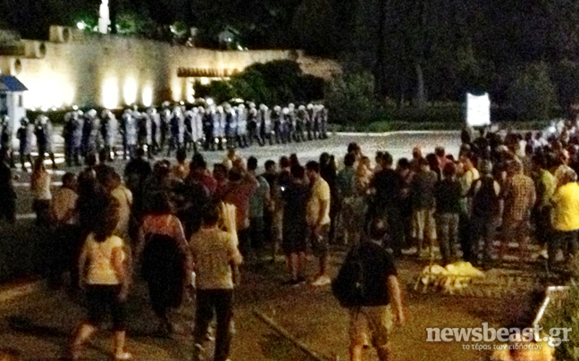Διαδηλωτές έχουν περάσει τα προστατευτικά κάγκελα που είχαν τοποθετηθεί μπροστά από το μνημείο του Άγνωστου Στρατιώτη, ενώ εκεί βρίσκονται παραταγμένες διμοιρίες των ΜΑΤ.