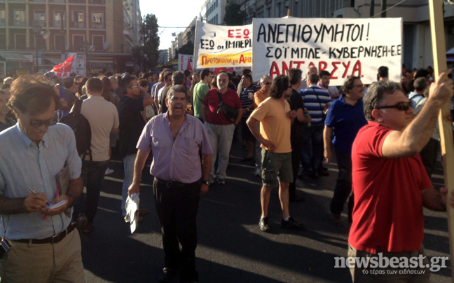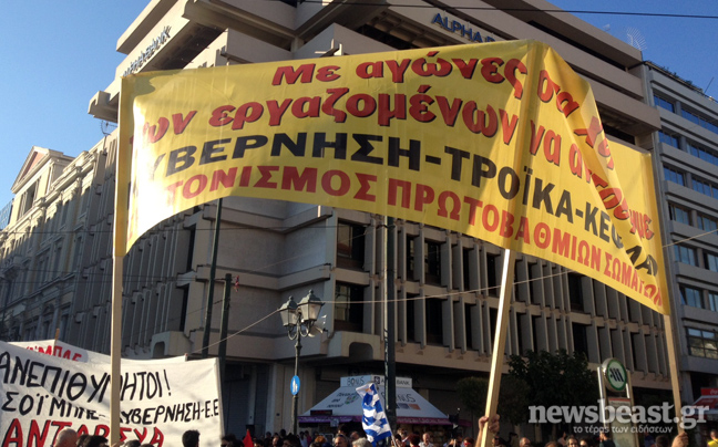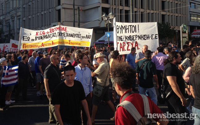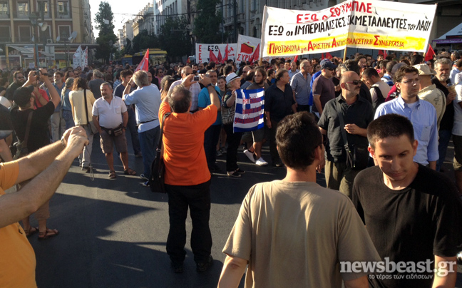 Συγκέντρωση διαμαρτυρίας με αφορμή την επίσκεψη Σόιμπλε στην Αθήνα πραγματοποιούν αυτή την ώρα στην πλατεία Κλαυθμώνος αριστερές οργανώσεις, μεταξύ των οποίων ο ΣΥΡΙΖΑ και η ΑΝΤΑΡΣΥΑ.