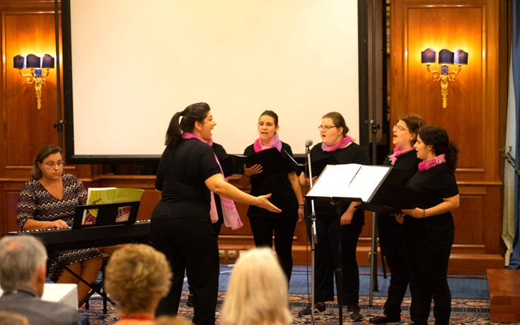 Μια ιδιαίτερη στιγμή της Τελετής Έναρξης του Συνεδρίου ήταν η παρουσία της Χορωδίας του Κέντρου Κοινωνικής Φροντίδας Ατόμων με Νοητική Υστέρηση ΕΣΤΙΑ, η οποία ερμήνευσε τραγούδια σημαντικών Ελλήνων συνθετών, χαρίζοντας μια ευχάριστη και ταυτόχρονα συγκινητική νότα στους παρευρισκόμενους.