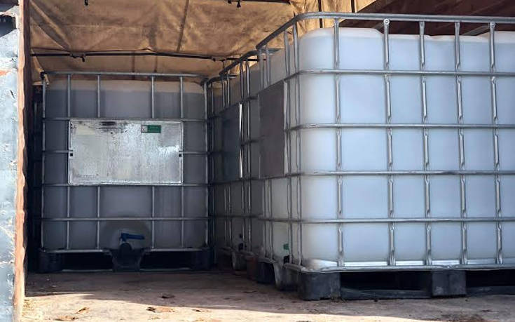 - 13 τόνοι οινόπνευμα (96ο βαθμών) εντός δεξαμενών αποθηκευμένο σε φορτηγό.