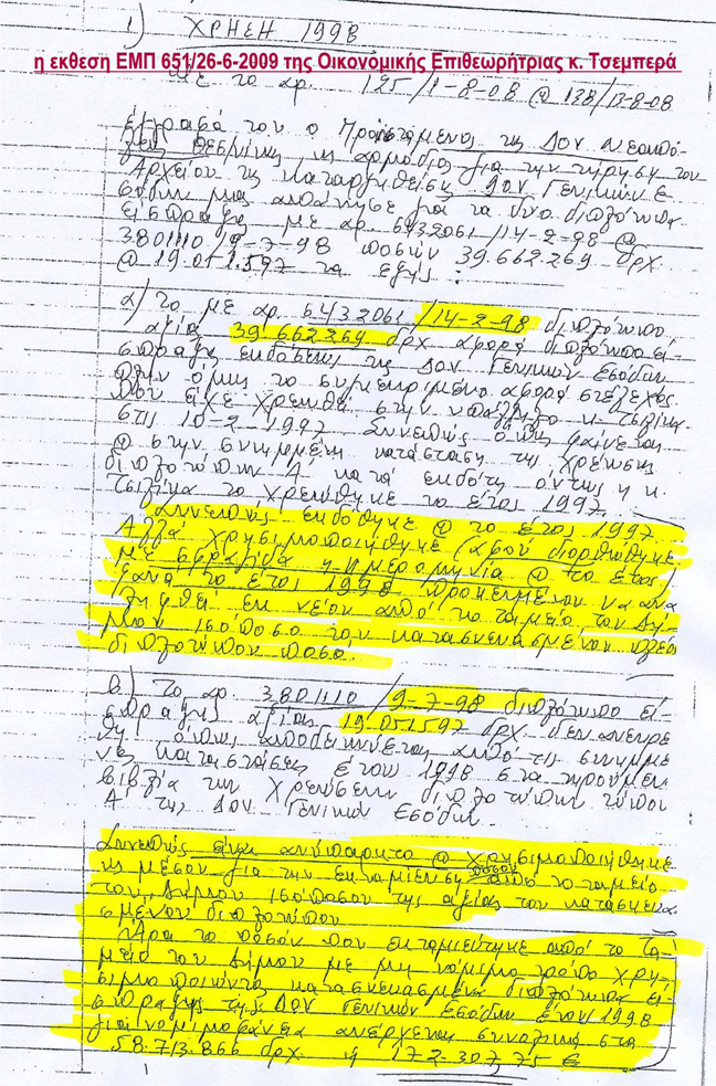 Ο έλεγχος της Οικονομικής Επιθεωρήτριας κ.Αν.Τσεμπερά στο έτος 1998, βρήκε δύο (2) πλαστά παραστατικά! Ένα τον Φεβρουάριο του 1998 ύψους 39.662.269 δρχ και ένα τον Ιούλιο του 1998 ύψους 19.051.597δρχ!