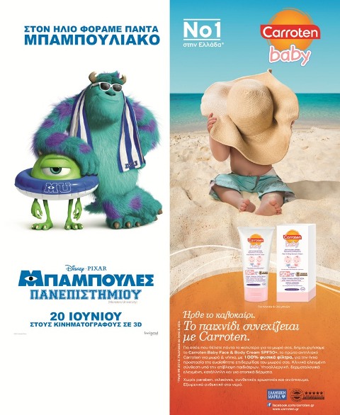Στο πλαίσιο της συνεργασίας του Carroten, του Νο. 1 αντηλιακού στην Ελλάδα, με την εταιρεία Feelgood διοργανώθηκε μία πρώτη προβολή στην Αθήνα και την Θεσσαλονίκη στα μέσα Ιουνίου της νέας ταινίας της Disney / Pixar Monsters University (Μπαμπούλες Πανεπιστημίου) αποκλειστικά για τους μικρούς του φίλους και για όσους αισθάνονται ακόμα παιδιά!
