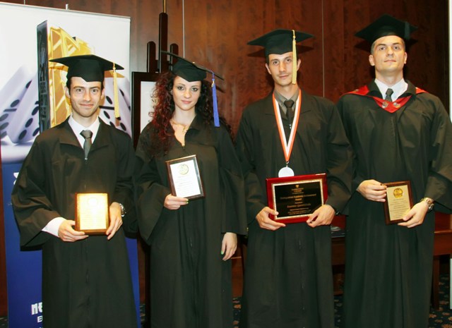 Οι σπουδαστές που πέτυχαν την υψηλότερη επίδοση στα προγράμματα σπουδών του New York College. Από αριστερά, Χρήστος Καφετζίδης, Δέσποινα Ασλανίδου, Ιωάννης Γαβριηλίδης και Αθανάσιος Κόντης