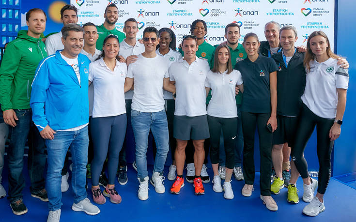 Η διοίκηση του ΟΠΑΠ με τον Σάκη Ρουβά, τους αθλητές της ΚΑΕ ΠΑΝΑΘΗΝΑΙΚΟΣ ΟΠΑΠ, τους αθλητές του ΠΑΝΑΘΗΝΑΙΚΟΥ Α.Ο. και τους OPAP Champions