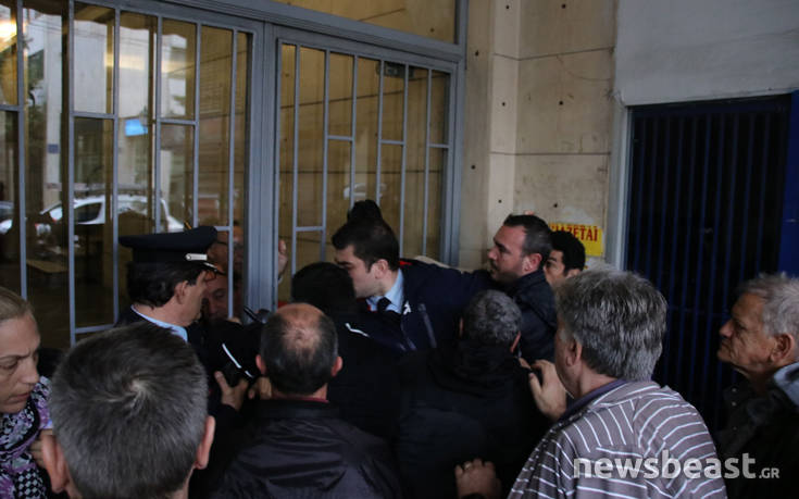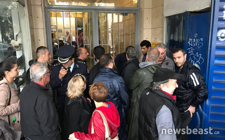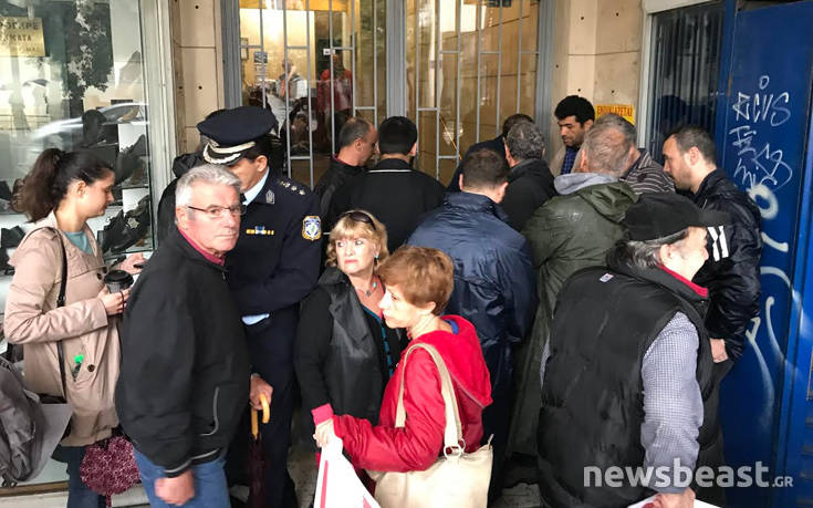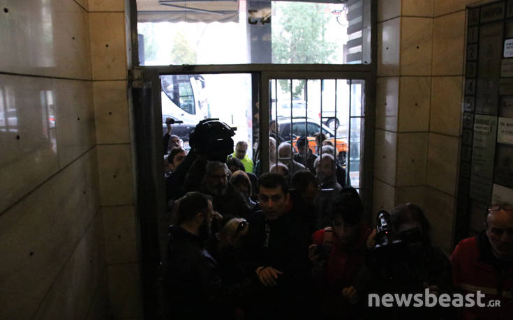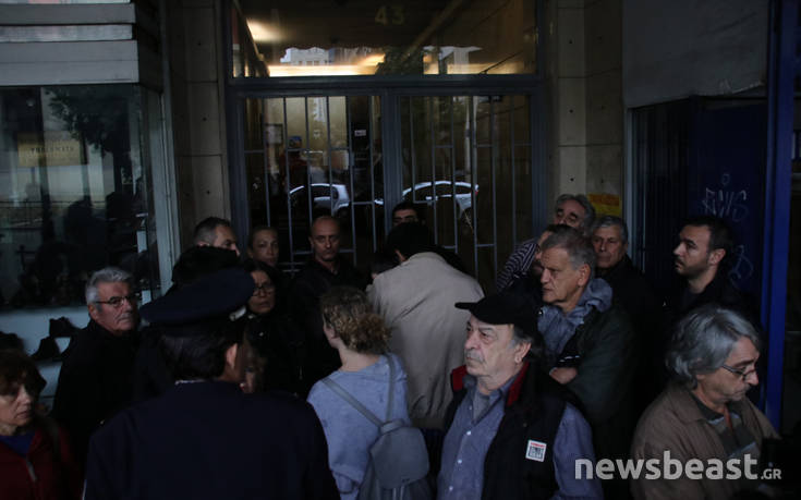 Μέλη του ΠΑΜΕ μπήκαν στην πολυκατοικία και έφτασαν στον 7ο όροφο, όπου ζητούν να συναντηθούν με τη συμβολαιογράφο για το οίκημα που είναι να μπει σε πλειστηριασμό.