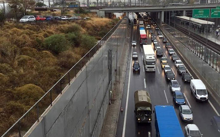 Σύμφωνα με την Τροχαία, λόγω συσσώρευσης των υδάτων επιβραδύνεται η κυκλοφορία των οχημάτων στη δεξιά λωρίδα στο ύψος της Καλαμακίου στο ρεύμα προς Πειραιά.
