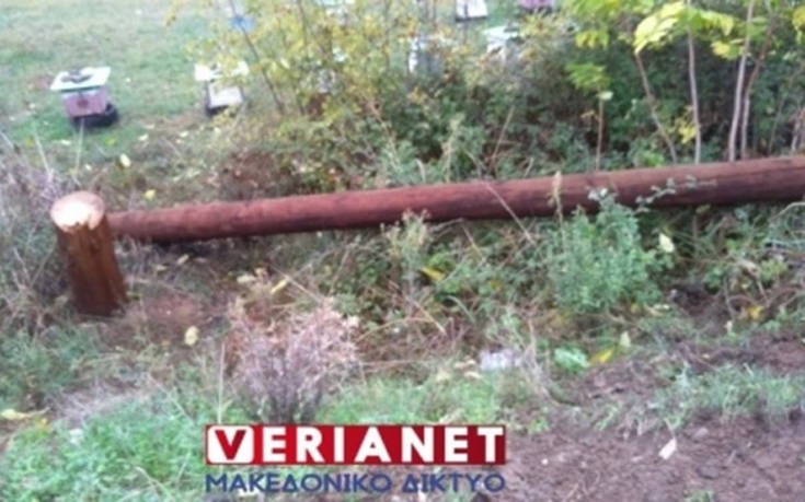 Συνεργείο της ΔΕΔΔΗΕ διαπίστωσε ότι πέρα από την κολόνα που είναι πριονισμένη και πεσμένη στο έδαφος, σε άλλες δυο κολόνες επιχειρήθηκε το κόψιμό τους σύμφωνα με το verianet.gr.