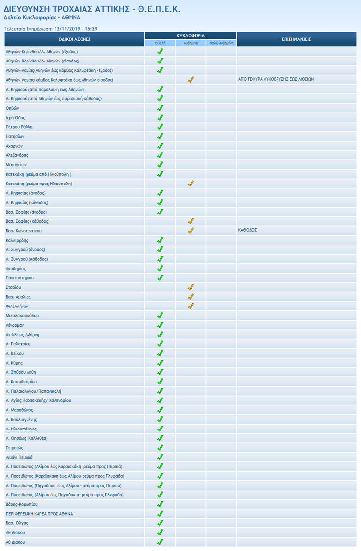 Η κίνηση είναι αυξημένη στους εξής δρόμους: