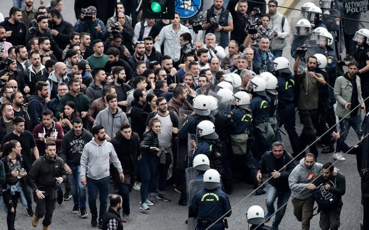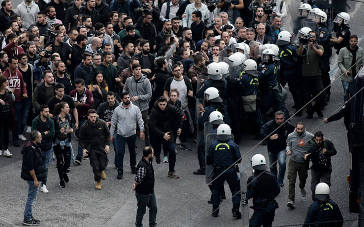 Ολοκληρώθηκε πριν από λίγα λεπτά η πορεία του «μπλοκ» με την αιματοβαμμένη σημαία για το Πολυτεχνείο, μπροστά από την πρεσβεία των ΗΠΑ.
