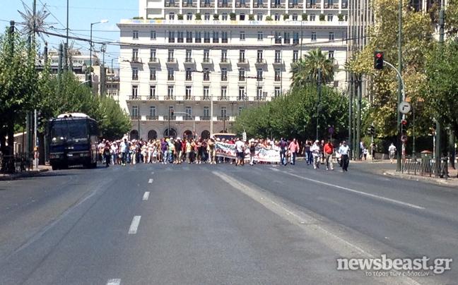 Όπως βλέπετε από τις φωτογραφίες του newsbeast.gr, η πορεία διεξάγεται στο ύψος της λεωφόρου Βασιλίσσης Σοφίας και φθάνει στο υπουργείο Διοικητικής Μεταρρύθμισης.