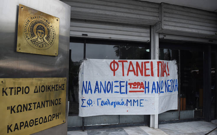 Κατάληψη στο κτήριο διοίκησης του ΑΠΘ πραγματοποιούν από το πρωί οι φοιτητικοί σύλλογοι των Τμημάτων Γεωλογίας και ΜΜΕ ζητώντας να δοθεί λύση στο θέμα της συμφόρησης που παρατηρείται στην κυρίως αίθουσα της Φοιτητική Λέσχης του Ιδρύματος.