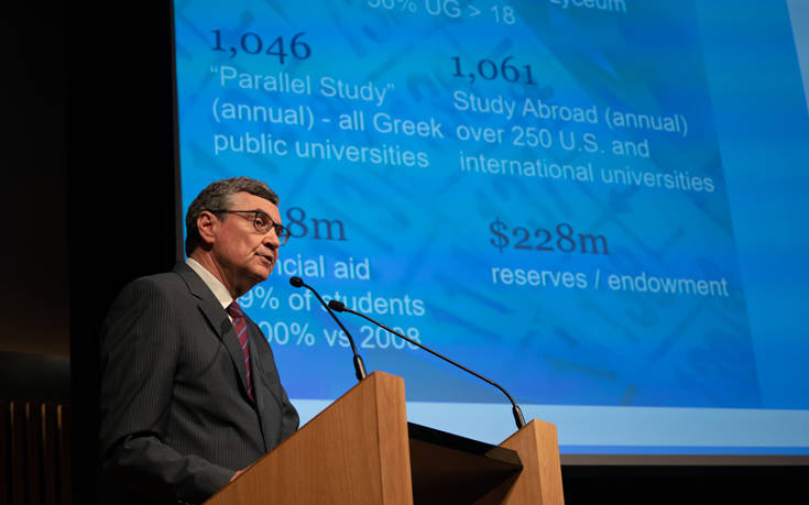 Η εκδήλωση ξεκίνησε με την ομιλία του Προέδρου του Αμερικανικού Κολλεγίου Ελλάδος, Dr. David G. Horner, ο οποίος παρουσίασε στοιχεία που αφορούν στο σημαντικό αποτύπωμα του Αμερικανικού Κολλεγίου Ελλάδος και στην αξία που έχει δημιουργήσει για την ακαδημαϊκή αλλά και την επιχειρηματική κοινότητα, τα τελευταία περίπου 150 χρόνια.