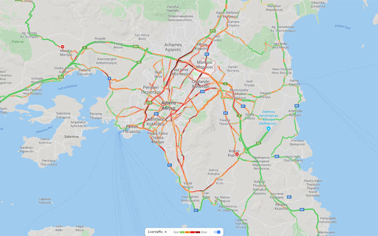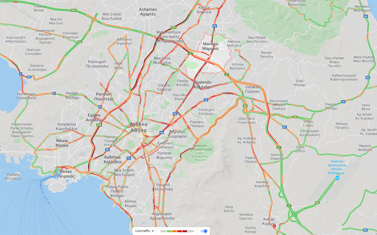 Οδηγείτε με προσοχή!Καθυστερήσεις 5′-10′, από Μεταμόρφωση έως Κηφισίας, προς Αεροδρόμιο.