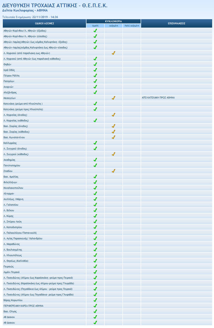 Σύμφωνα με την ενημέρωση από την Τροχαία η κίνηση είναι αυξημένη στη λεωφόρο Κηφισού (από παραλιακή έως Αθηνών), στη Μεσογείων, στην άνοδο της λεωφόρου Κηφισίας, στη Βασ. Σοφίας, στη Βασ. Κωσνταντίνου, στην κάθοδο της λεωφόρου Συγγρού και στη Σταδίου.
