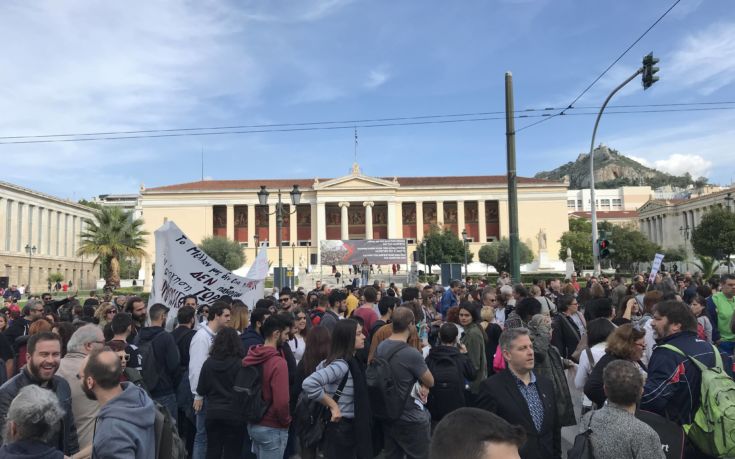 Η συγκέντρωσή τους έγινε στις 12:00 στα Προπύλαια και στη συνέχεια ξεκίνησαν πορεία με προορισμό τη Βουλή, με αποτέλεσμα να είναι κλειστή η Πανεπιστημίου.