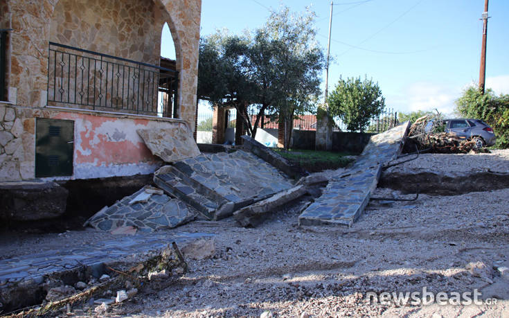 Δρόμοι «άνοιξαν» λόγω της σφοδρής κακοκαιρίας, αυτοκίνητα παρασύρθηκαν και σταμάτησαν πάνω σε δέντρα, ενώ αρκετά σπίτια πλημμύρισαν από τα ορμητικά λασπόνερα. Ταυτόχρονα, πέτρες μπάζα και διάφορα φερτά υλικά βρέθηκαν σε κεντρικούς δρόμους της περιοχής.