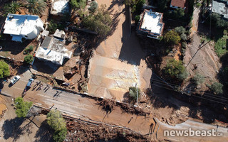 Οι καταστροφές στην Κινέτα και στους Αγίους Θεοδώρους είναι πολύ μεγάλες με δρόμους να υποχωρούν και να μετατρέπονται σε ορμητικούς χειμάρρους με τα νερά να μπαίνουν μέσα σε σπίτια και επιχειρήσεις.