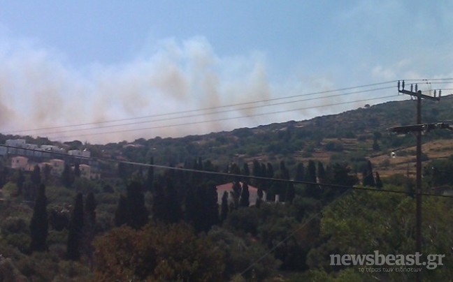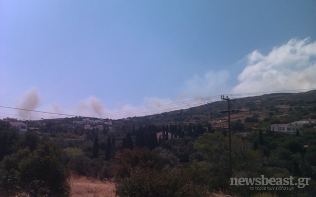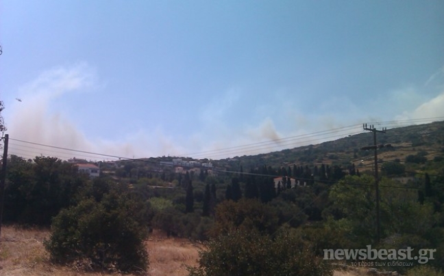 Η φωτιά καίει χαμηλή βλάστηση, αλλά απειλεί άμεσα το χωριό, το οποίο εκκενώθηκε, ενώ καταβάλλονται προσπάθειες από τις πυροσβεστικές δυνάμεις για να μην φτάσουν οι φλόγες στα σπίτια.