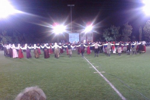 Η συνέχεια δόθηκε στο εθνικό στάδιο Ανωγείων, όπου 500 χορευτές, ανάμεσα τους και ομογενειακά χορευτικά συγκρότημα από την Αυστραλία, ανέδειξαν την Κρήτη των αγώνων, της ιστορίας και της παράδοσης.