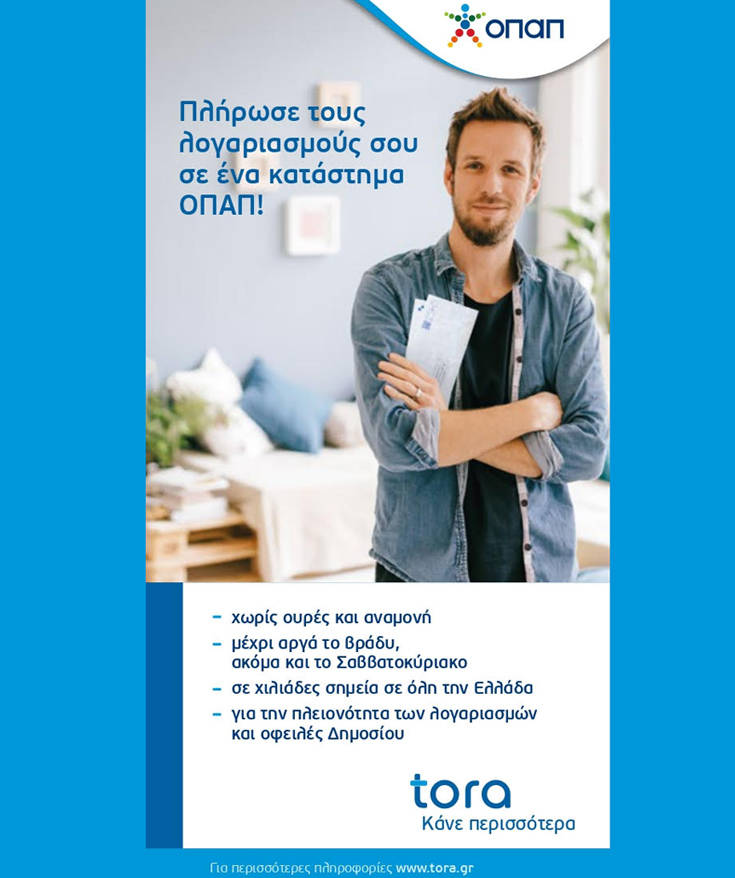 Η υπηρεσία πληρωμών είναι διαθέσιμη μέσω της tora Wallet, θυγατρικής εταιρείας του ομίλου ΟΠΑΠ. Περισσότερα από 2.700 καταστήματα ΟΠΑΠ εξυπηρετούν πλέον καθημερινά τον κόσμο καλύπτοντας την πλειονότητα των λογαριασμών.