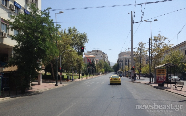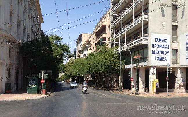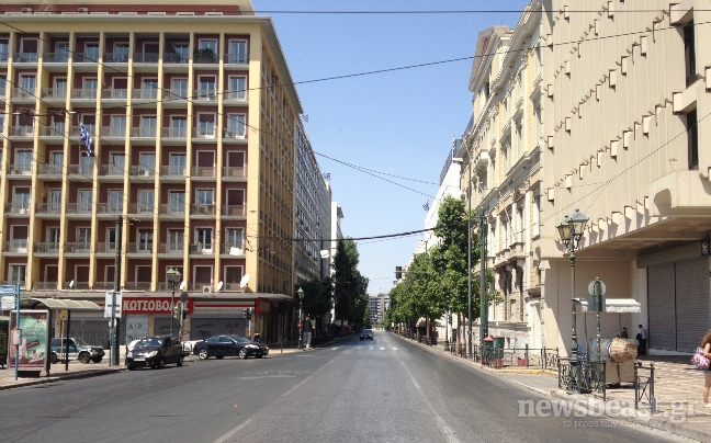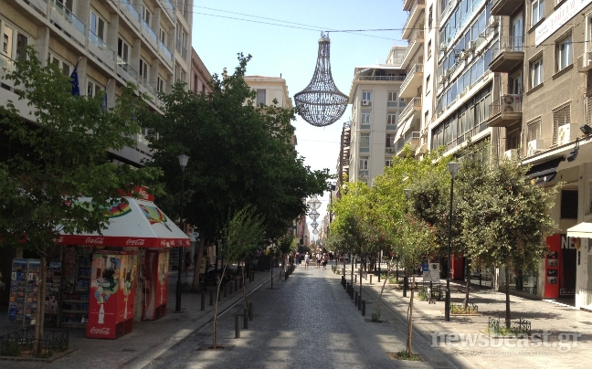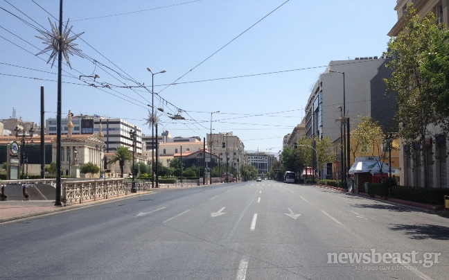 Δρόμοι έρημοι, με ένα αυτοκίνητο στο τόσο να ταράζει την ασυνήθιστη ηρεμία, άδεια πεζοδρόμια, κλειστά μαγαζιά, ησυχία.