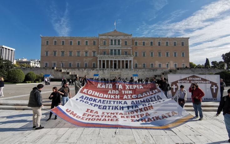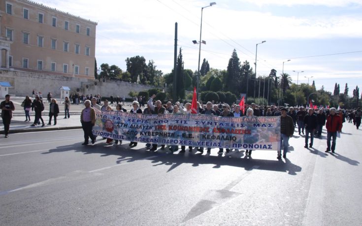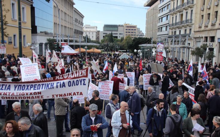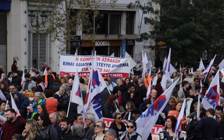Με κεντρικό σύνθημα «Κάτω τα χέρια από την Κοινωνική Ασφάλιση» ολοκληρώθηκε το συλλαλητήριο εργαζομένων, αυτοαπασχολουμένων, συνταξιούχων στην Βουλή. Νωρίτερα η συγκέντρωση στα Προπύλαια άνοιξε με χαιρετισμό του Ολιβιέ Ματό, γγ του Εργατικού Κέντρου Μασσαλίας, ο οποίος εξέφρασε την ταξική αλληλεγγύη και τη στήριξη των εργαζομένων του νομού και της πόλης της Μασσαλίας.
