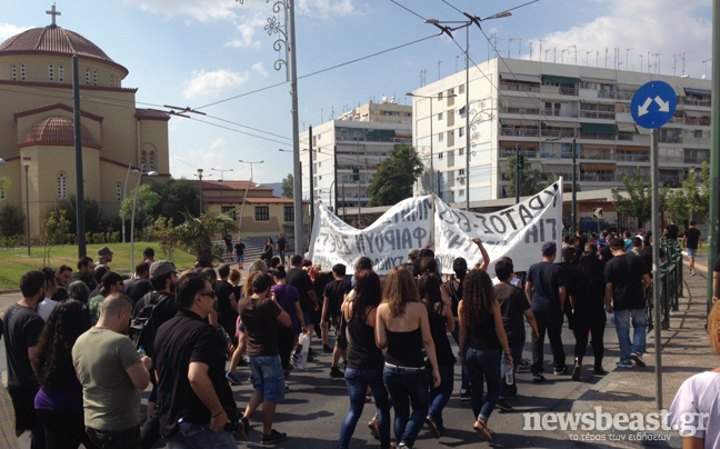 Περίπου 300 άτομα ξεκίνησαν πορεία προς το νεκροταφείο, όπου θα κηδευτεί μία ώρα αργότερα ο Θανάσης, που έχασε άδικα τη ζωή του.