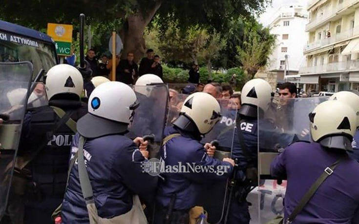 Αγρότες που πρόσκεινται στο ΚΚΕ διαμαρτυρήθηκαν κρατώντας στα χέρια τους πλακάτ ενώ δεν έλειψαν τα επεισόδια με άνδρες των ΜΑΤ που βρέθηκαν στο σημείο. Οι δύο πλευρές συγκρούστηκαν ενώ η Αστυνομία έκανε και χρήση χημικών.