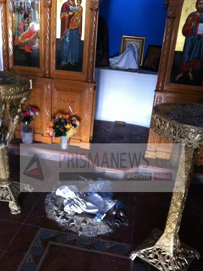 Μπροστά σε ένα απίστευτο θέαμα βρέθηκαν σήμερα το πρωί οι πιστοί στο μικρό ναό στην περιοχή της Λυγαριάς στο Ηράκλειο.