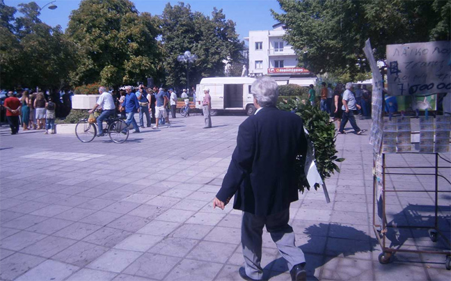 Τελικά η τελετή έληξε χωρίς να καταθέσει ο κ. Λάππας το στεφάνι που βρισκόταν τοποθετημένο σε άλλον χώρο της πλατειάς.