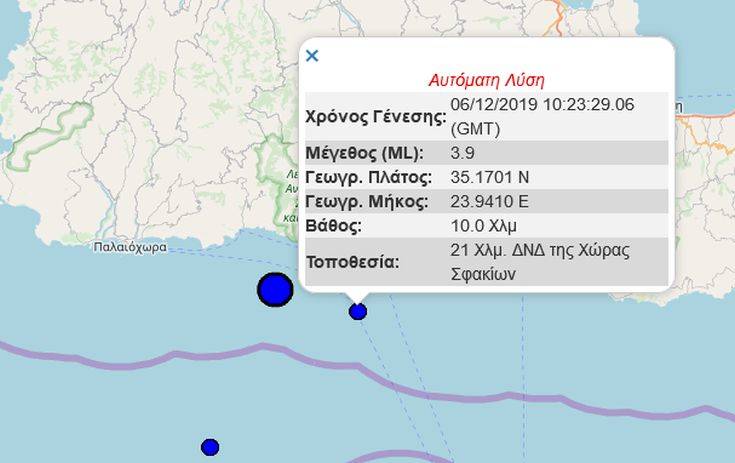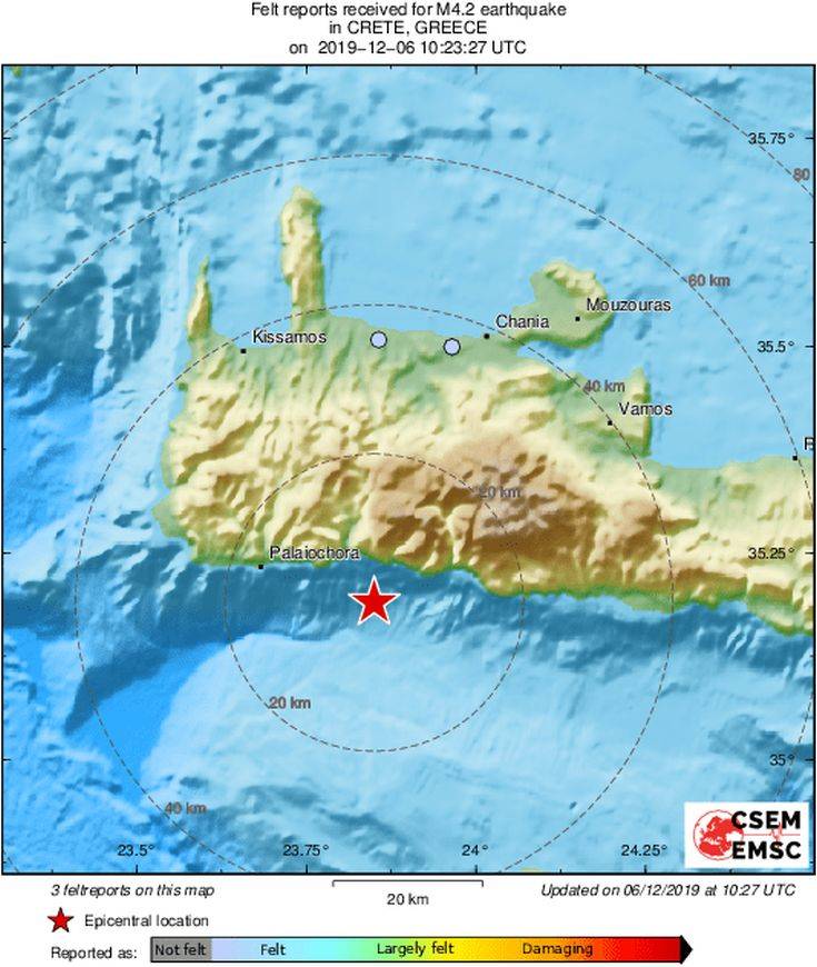 Υπενθυμίζεται ότι νωρίτερα και συγκεκριμένα στις 10:45 το πρωί της Παρασκευής σημειώθηκε ισχυρός σεισμός 4,5 Ρίχτερ στην Κρήτη.