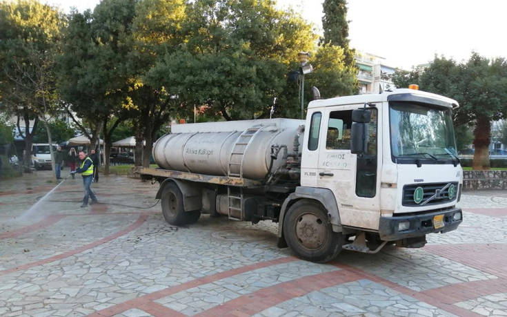 Τέλος, οι άνθρωποι της Διεύθυνσης Καθαριότητας σκούπισαν την περιοχή και στη συνέχεια, με ειδικά πλυστικά οχήματα, τα οποία απελευθερώνουν ζεστό νερό με μεγάλη πίεση, την έπλυναν και την απολύμαναν.