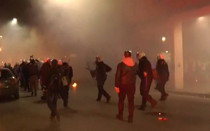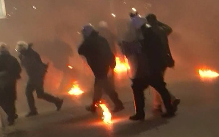 Ειδικότερα, σύμφωνα με το ΑΠΕ – ΜΠΕ, άτομα που είχαν καλυμμένα τα χαρακτηριστικά τους και βρίσκονταν στο τέλος της πορείας, πέταξαν βόμβες μολότοφ και φωτοβολίδες εναντίον των αστυνομικών των ΜΑΤ που τους ακολουθούσαν.
