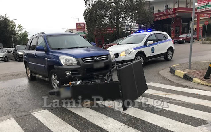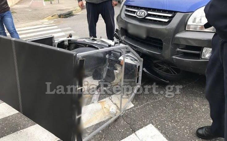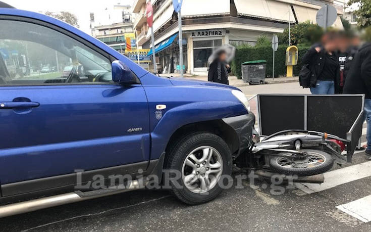 Αποτέλεσμα ήταν το μηχανάκι να βρεθεί κάτω από τις ρόδες του και ο νεαρός οδηγός του, που δουλεύει ως ντελίβερι, να τραυματιστεί. Ευτυχώς φορούσε κράνος και απέφυγε τα χειρότερα, ωστόσο χτύπησε αρκετά και χρειάστηκε η διακομιδή του με ασθενοφόρο στο Γενικό Νοσοκομείο Λαμίας.
