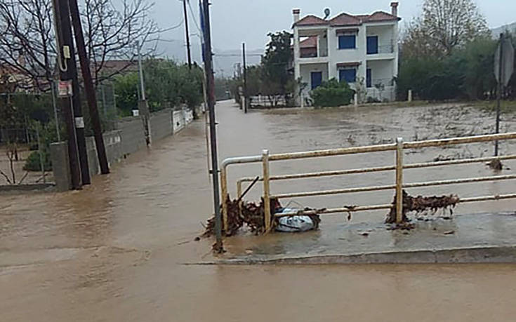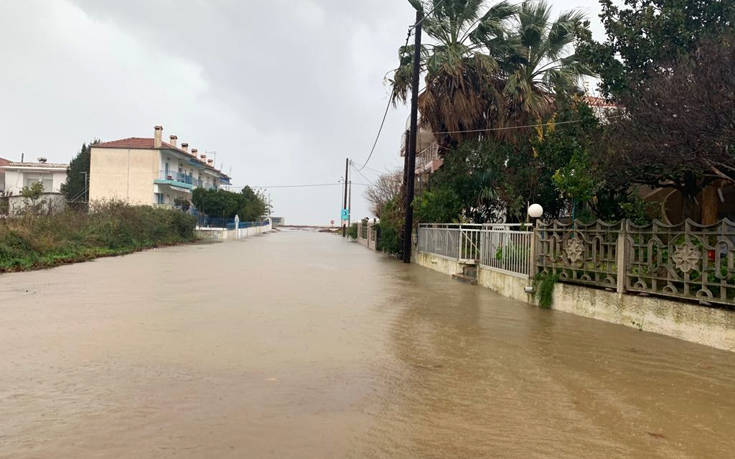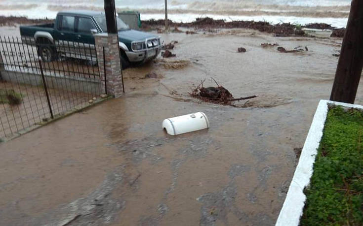 Αρκετά σπίτια υπέστησαν ζημιές, ενώ το νερό έχει παρασύρει αντικείμενα στους δρόμους που θυμίζουν ποτάμια.