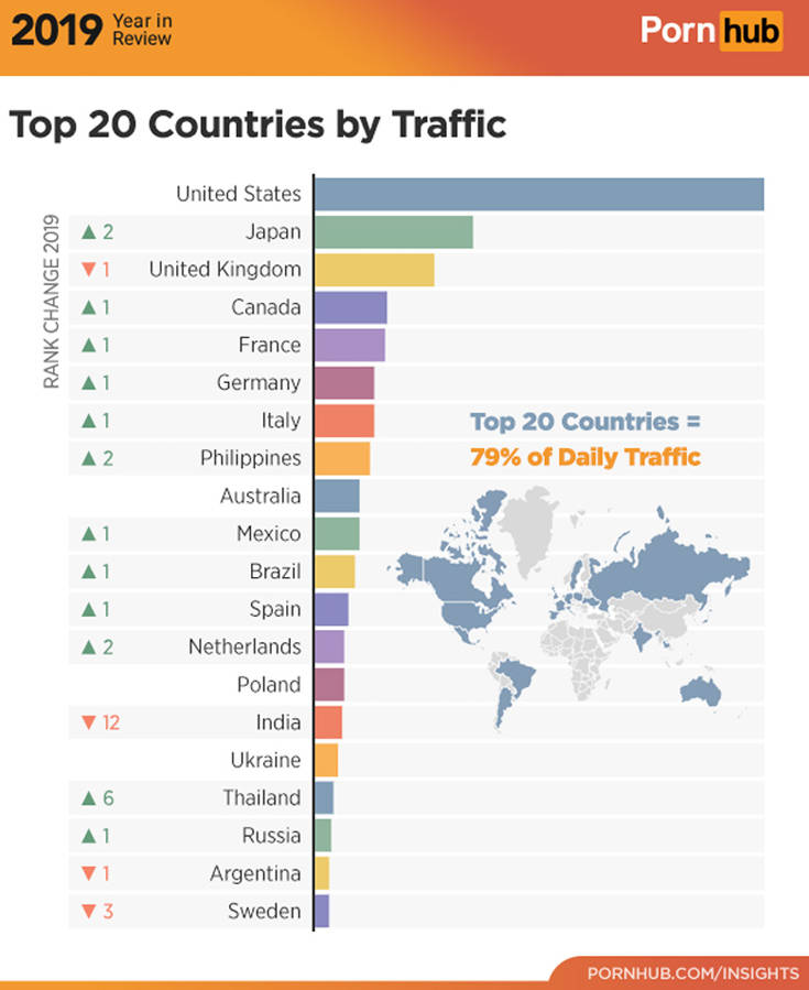 Η χώρα μας πάντως δεν βρίσκεται στην λίστα με τις 20 χώρες που έχουν τους περισσότερες επισκέπτες στο PornHub.