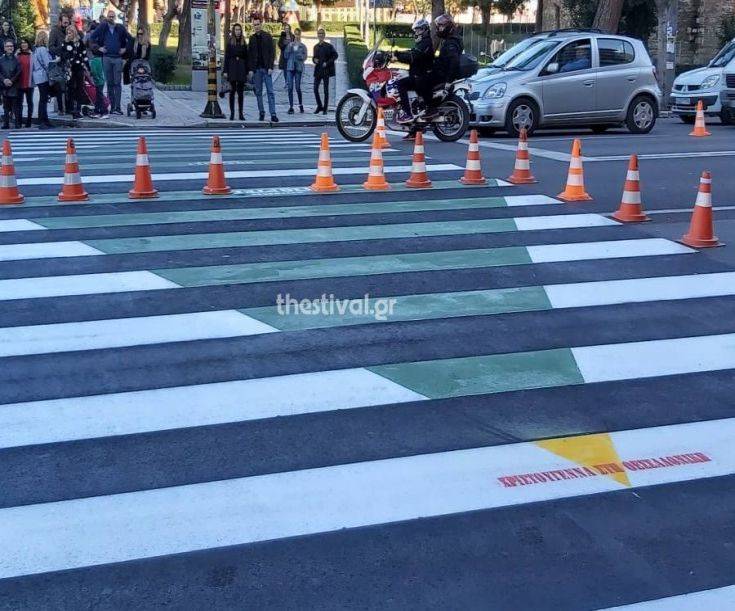 Σε χριστουγεννιάτικο κλίμα μπήκε και η διάβαση στην Αριστοτέλους, στο ύψος της Εγνατίας Οδού, στον δρόμο κάτω από το χριστουγεννιάτικο χωριό.